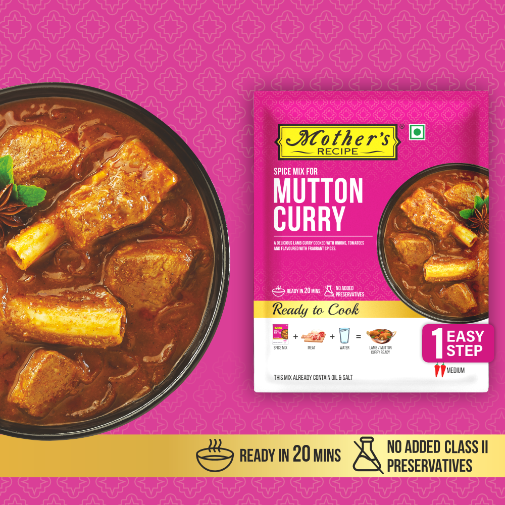 Mother’s recipe mutton curry contains the perfect blend of best spices giving your mutton curry an unforgetful flavour